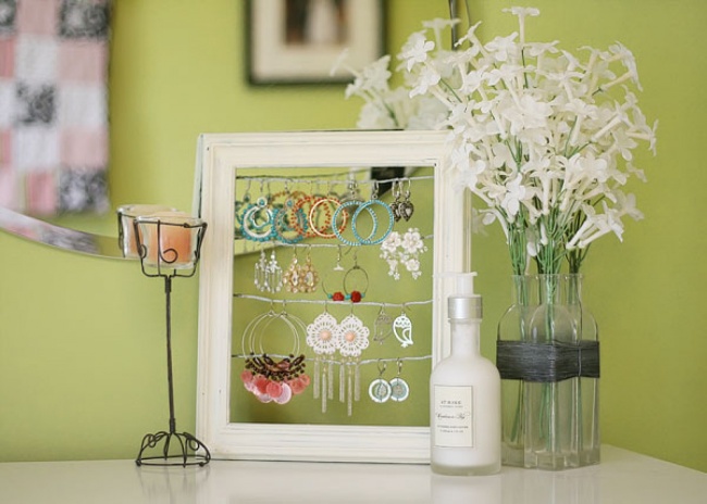 1. Натянутая на рамку леска позволит красиво развесить бижутерию и украсит интерьер,