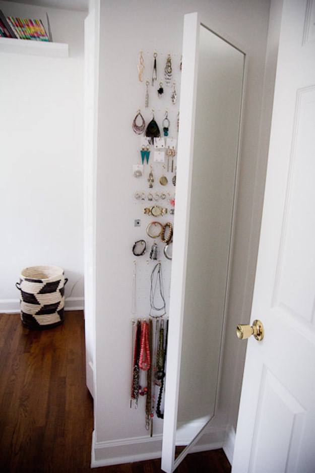 3. За зеркалом можно хранить украшения,
